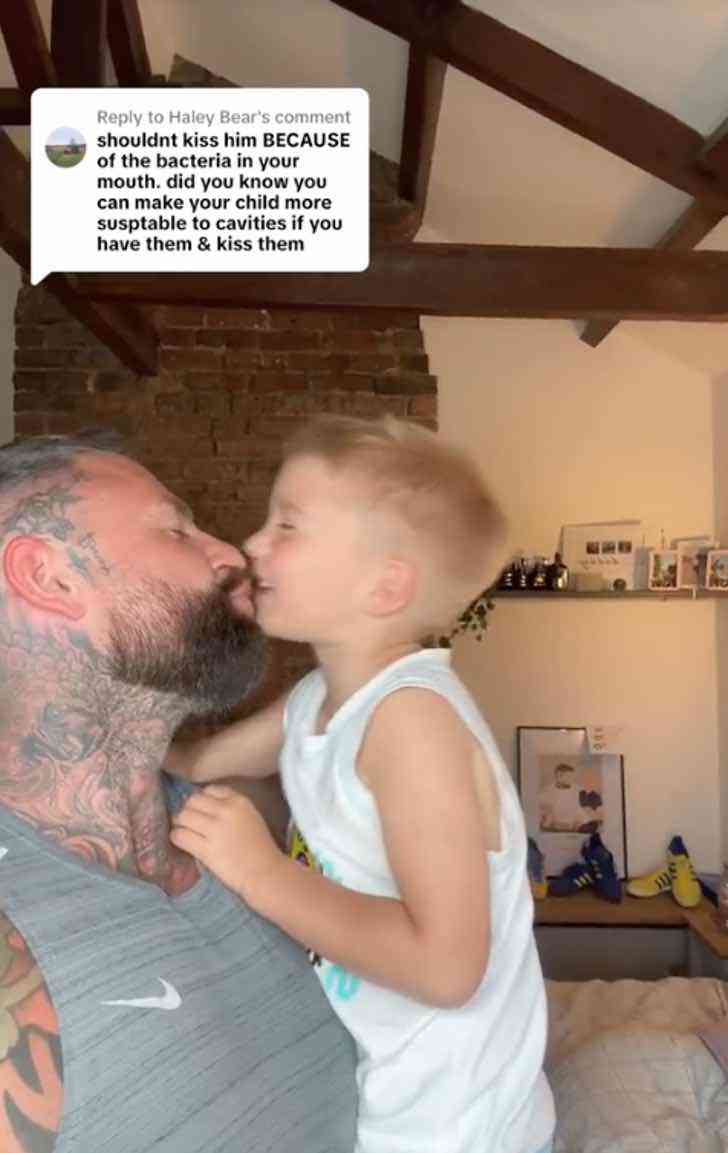 A través de su TikTok ‘tom_leeds‘, el hombre compartió un video que recopilaba los mejores momentos vividos junto a su pequeño Roman, pero un detalle que llamó la atención de un usuario fue que lo besara en la boca con total normalidad.