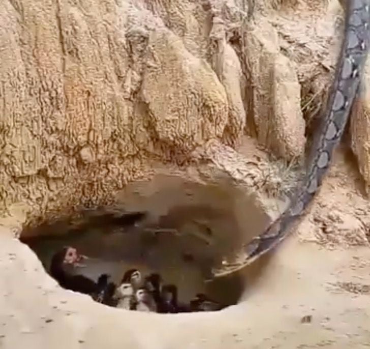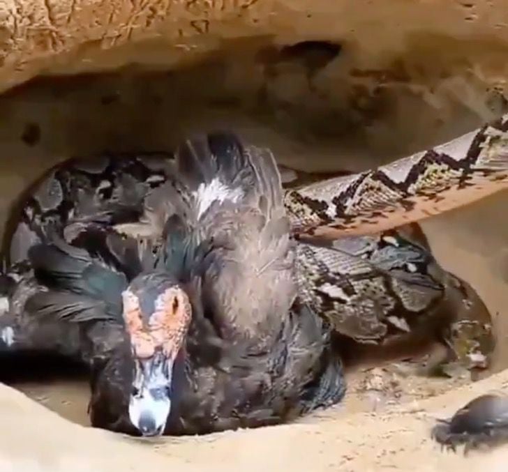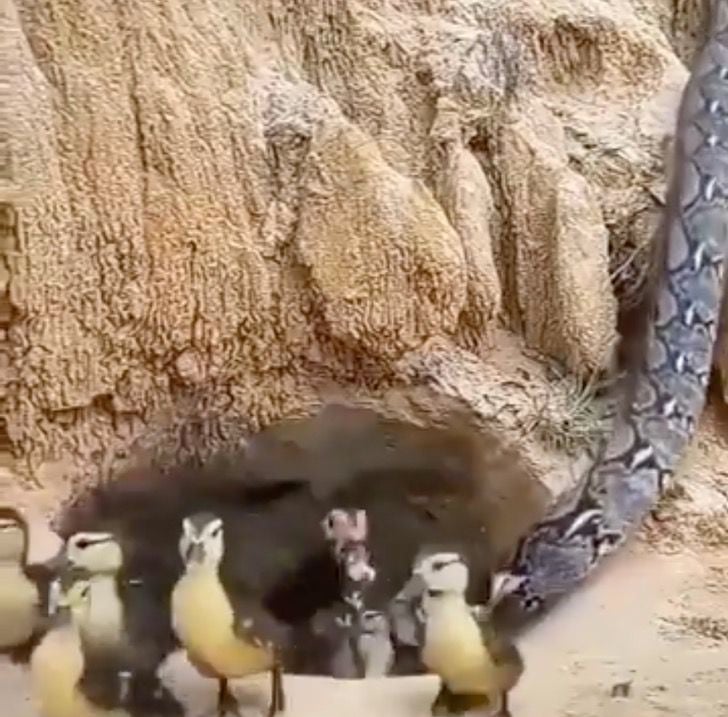 It seems this type of snake was a constrictor, as it can be seen slowly wrapping itself around the mother duck before eating her. Even though she knew she couldn’t win, this brave duck fought to the very end, despite having no claws or anything else to help her.