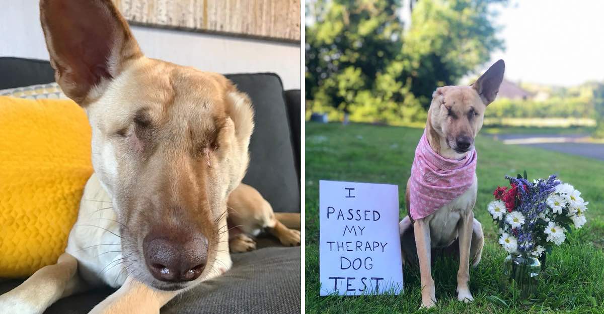 Perdió una oreja, parte de la mandíbula y la vista, pero jamás las ganas de seguir luchando. Ahora es un perro terapeuta, que visita centros de salud para brindar esperanza.